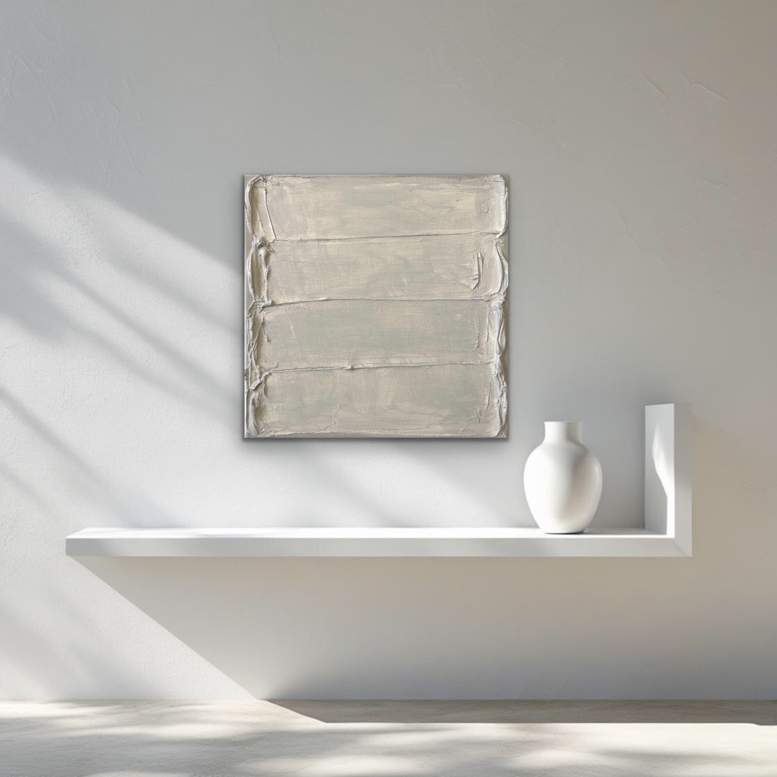 Murky Water is a unique 10x10 inch original oil and acrylic painting, designed to evoke sophistication with its refined color palette and texture. The neutral beige background, enriched with subtle taupe and khaki tones, offers a captivating yet serene aesthetic. The meticulously applied layers of oil and acrylic paints create a unique, textured surface that draws the viewer in, offering an immersive experience with every glance. The sides are finished in the same elegant beige, ensuring a seamless, polished presentation. Ready to hang with professional wiring and my signature on the back, this painting arrives with free worldwide shipping, bringing timeless elegance into any space.