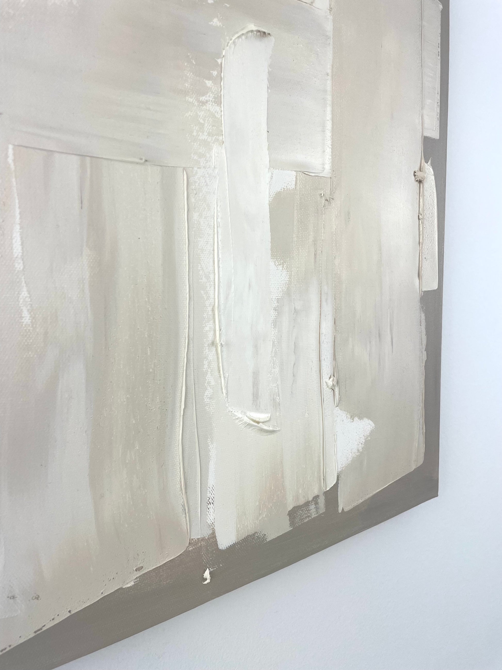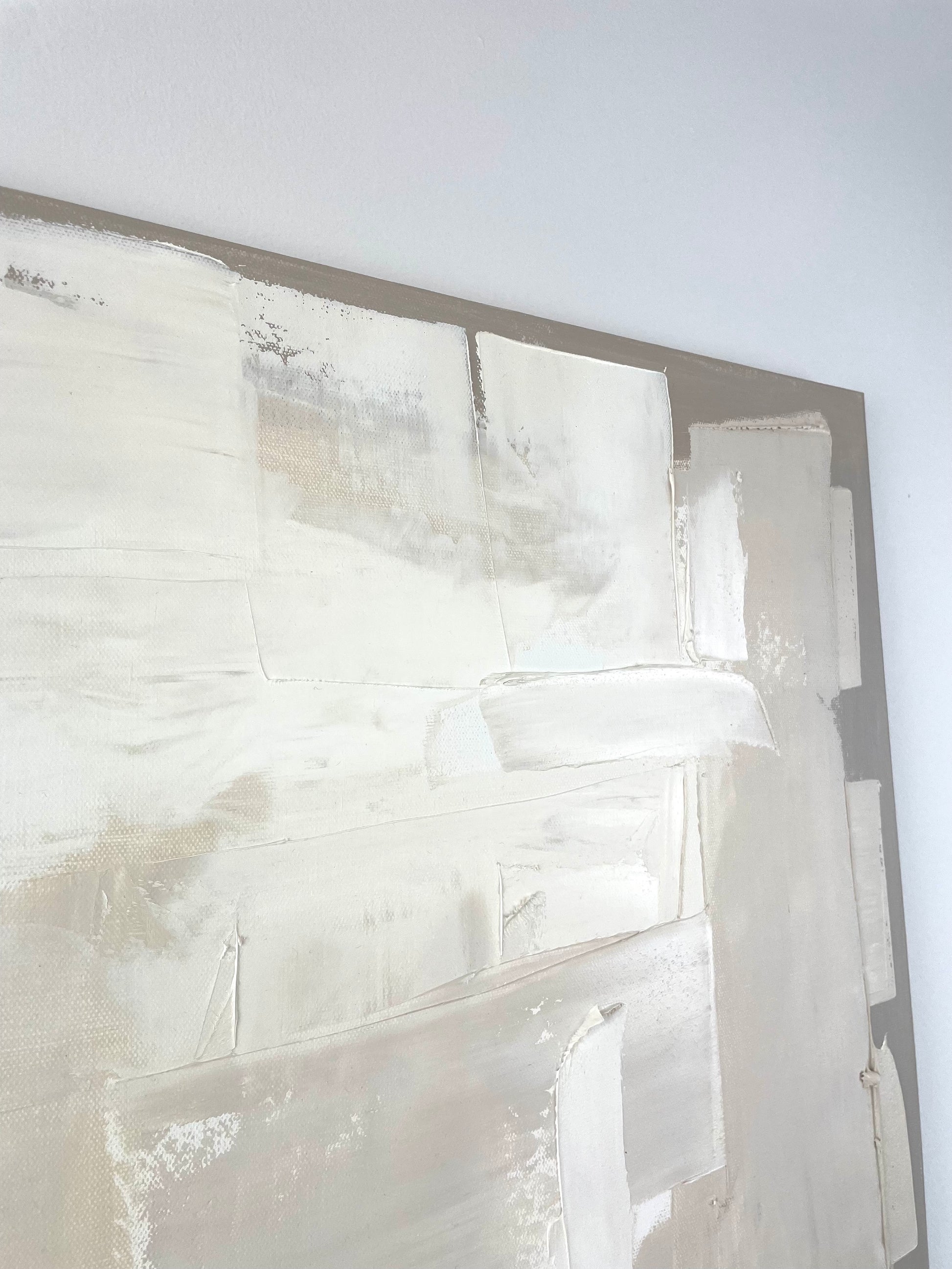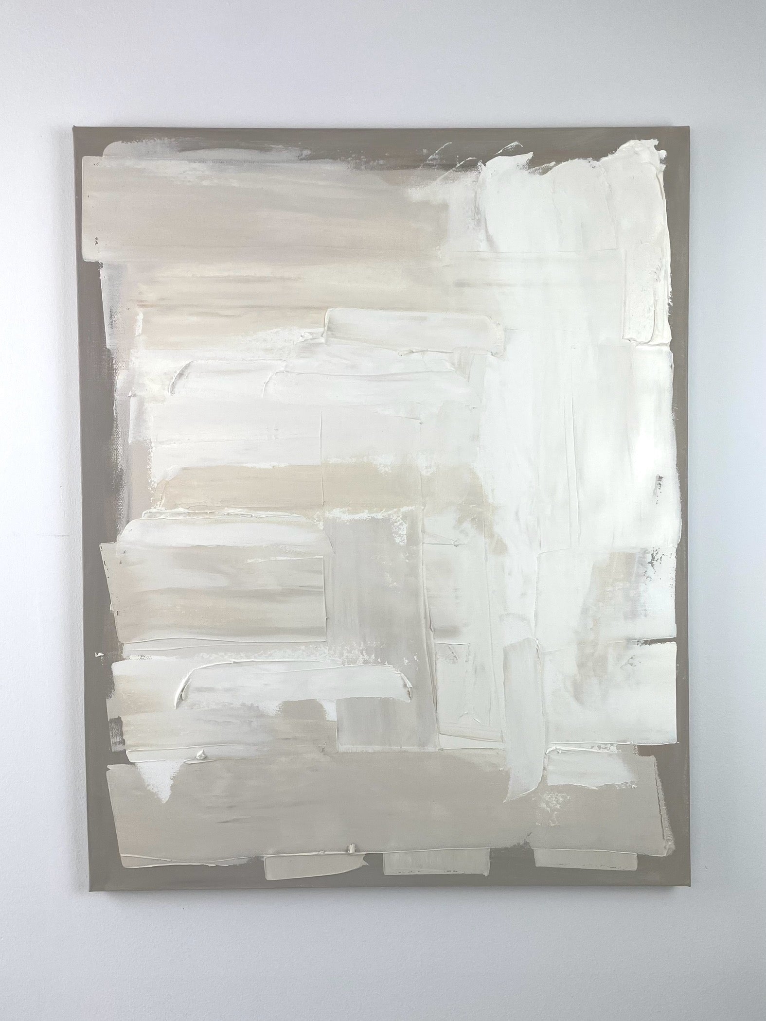 A 24x30 inch original oil painting on stretched canvas, designed in soft, neutral tones for a quiet sense of luxury. Layers of white, cream, and beige are applied with intention, creating subtle movement and texture across the surface.